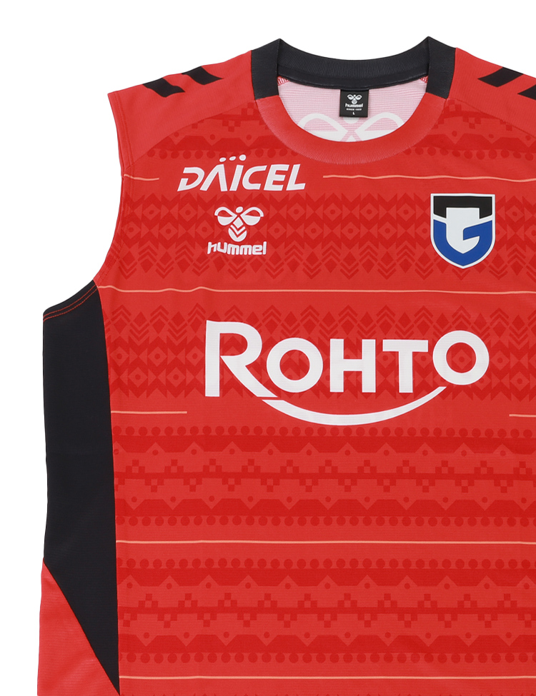 J1百年構想リーグ及び2026-27シーズン着用のガンバ大阪選手着用モデル。汗をかいたときの肌への張り付きを軽減する肌面撥水糸を使用した素材を採用。プレー中の不快感を軽減させ、快適な着心地を追求したノースリーブプラクティスシャツ。ヒュンメルのバンブルビーロゴの要素で構成されたノルディック柄を採用。スリムなシルエットでシャープなスタイルを実現。ストレッチ性のある素材で、アクティブな動きにもスムーズに対応します。2026特別大会及び2026-27シーズン着用予定。【素材】