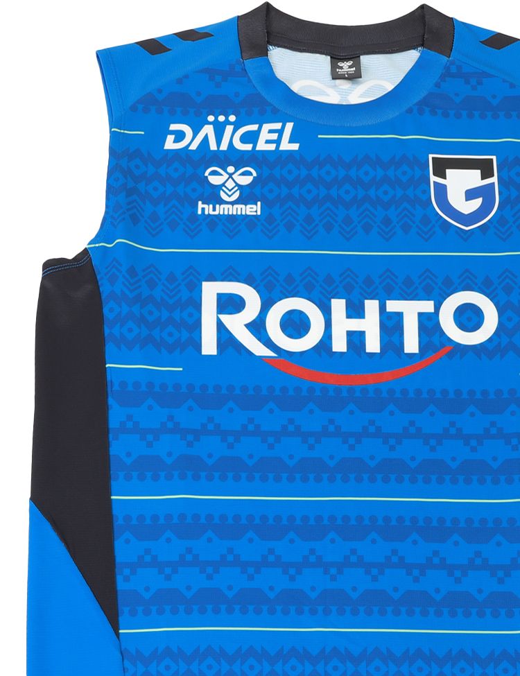 J1百年構想リーグ及び2026-27シーズン着用のガンバ大阪選手着用モデル。汗をかいたときの肌への張り付きを軽減する肌面撥水糸を使用した素材を採用。プレー中の不快感を軽減させ、快適な着心地を追求したノースリーブプラクティスシャツ。ヒュンメルのバンブルビーロゴの要素で構成されたノルディック柄を採用。スリムなシルエットでシャープなスタイルを実現。ストレッチ性のある素材で、アクティブな動きにもスムーズに対応します。2026特別大会及び2026-27シーズン着用予定。【素材】