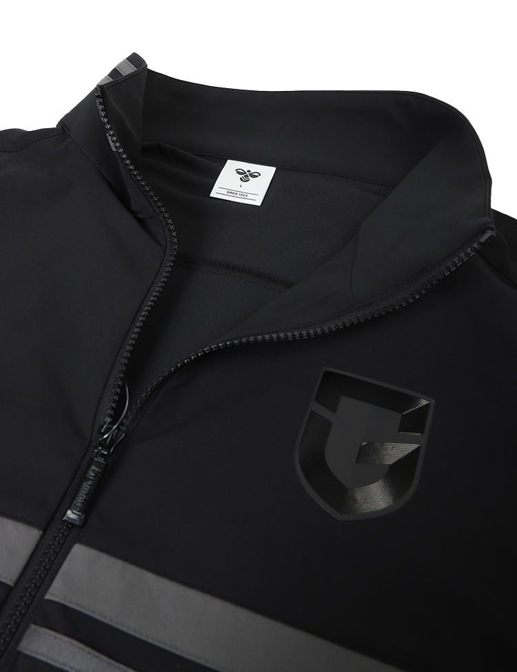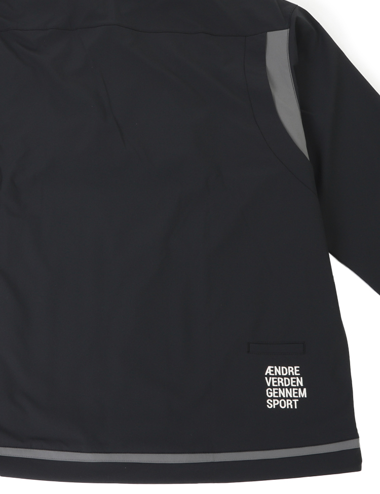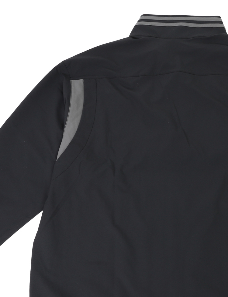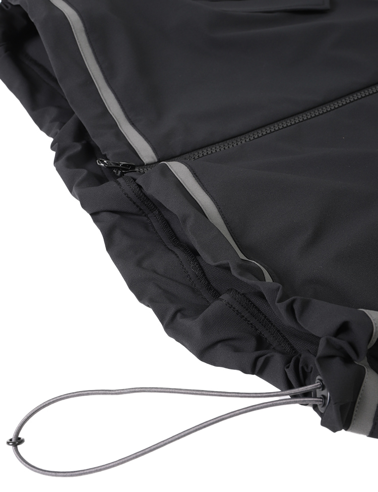 撥水性のあるストレッチ素材を使用したクロスジャケット。ダブルジップ仕様。左裾のゴムスピンドルでシルエットに変化をつけられる仕様。撥水素材で多少の雨でも安心、軽量でストレッチ性も高く、動きやすく、快適な着心地です。【素材】