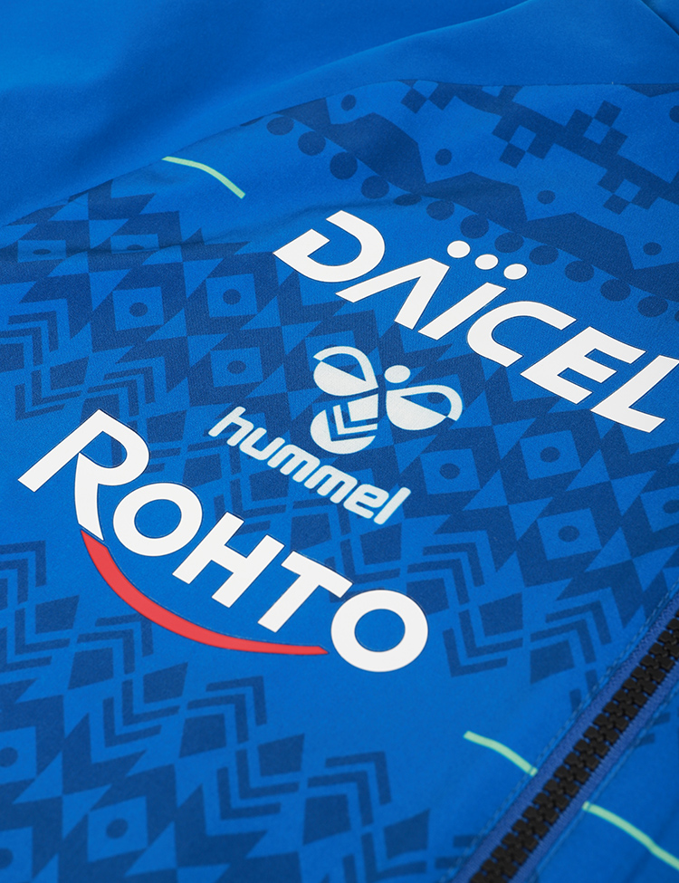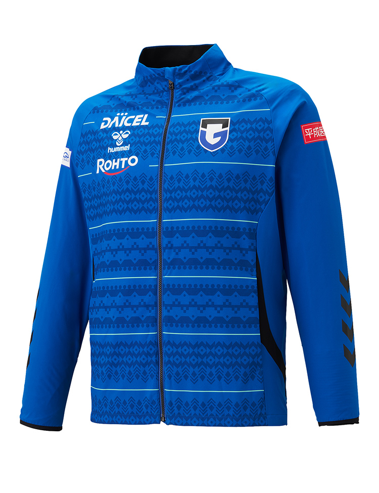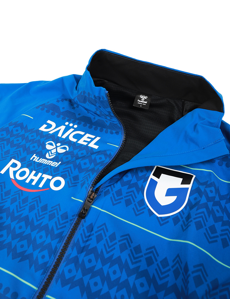J1百年構想リーグ及び2026-27シーズン着用のガンバ大阪選手着用モデル。表地は伸縮性に優れたウーブン素材を使用し、裏地にはストレッチ性のある起毛素材を使用。立体的なパターン設計で運動性能を追求した裏付きウーブンジャケット。ヒュンメルのバンブルビーロゴの要素で構成されたノルディック柄を採用。スリムなシルエットでシャープなスタイルを実現。ストレッチ性のある素材で、アクティブな動きにもスムーズに対応します。2026特別大会及び2026-27シーズン着用予定。【素材】